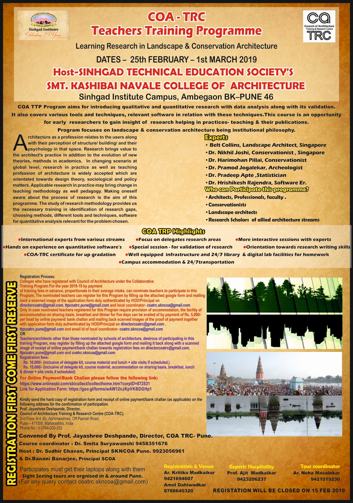 Training program:- Teaching Indian Architectural History at COA-TRC, Pune from 16th to 20th March, 2020.